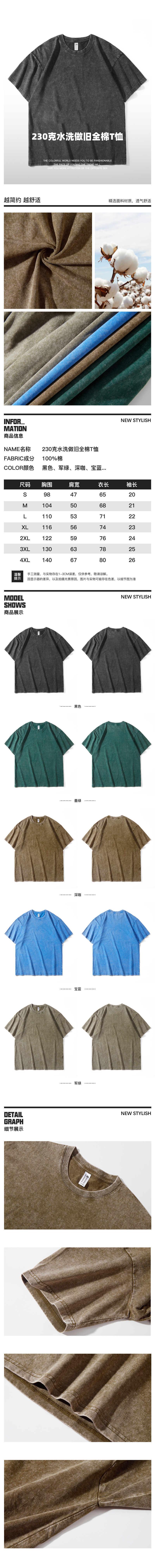 230g水洗做旧全棉T恤